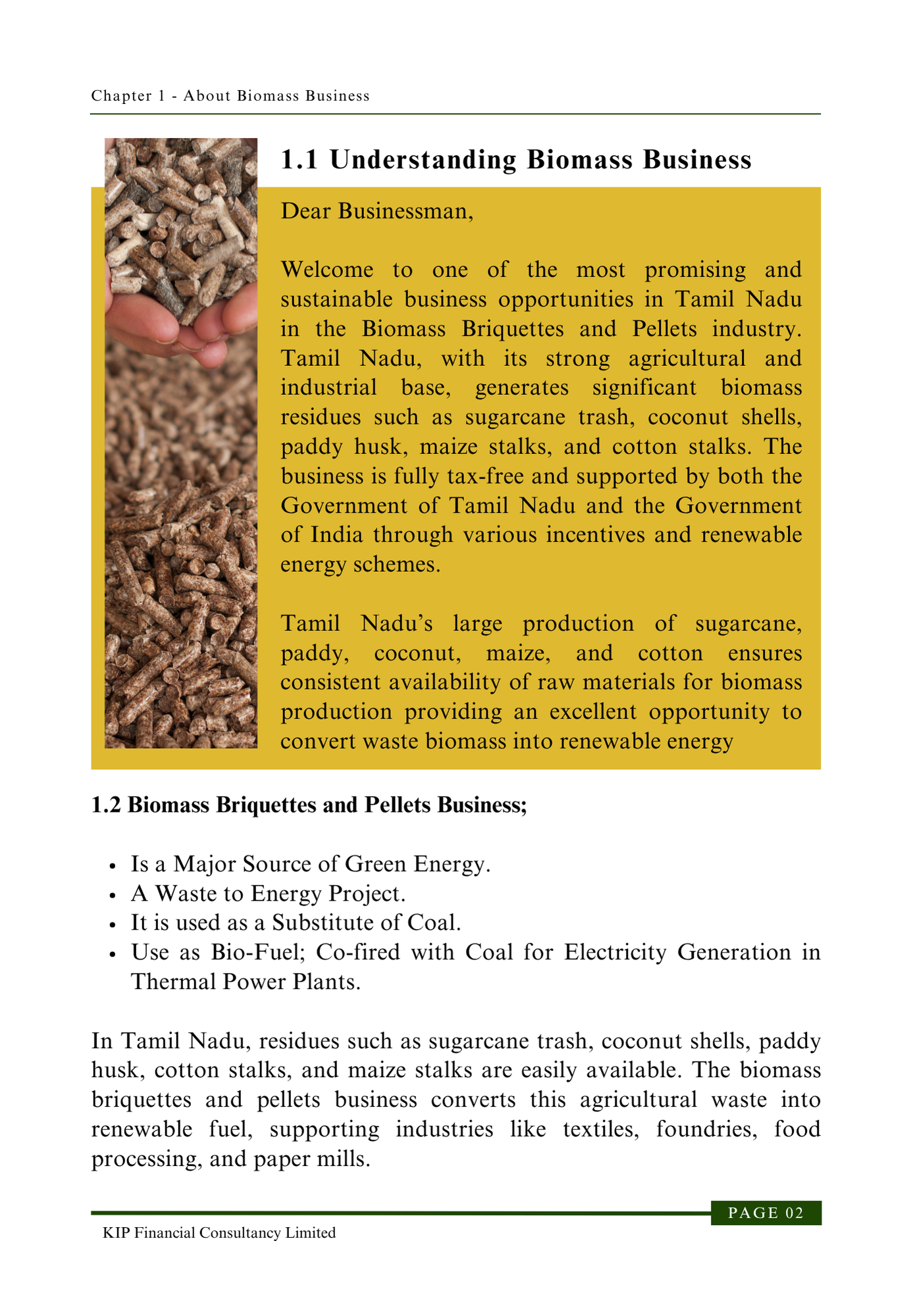 This eBook provides a complete guide to the Biomass Briquettes and Pellets business in Tamil Nadu. It explains the growing demand for biomass fuel, government policies, and business opportunities in the renewable energy sector.