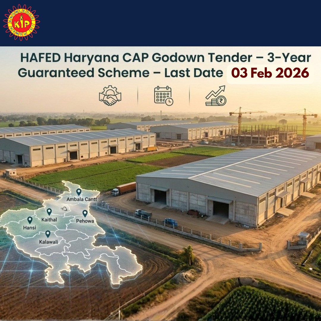 Construction & Leasing of CAP Storage Facility for Food Grains – HAFED (Haryana) The Haryana State Cooperative Supply and Marketing Federation Limited (HAFED) has invited e-tenders through the GeM portal for the construction, ownership, and leasing of new Covered and Plinth (CAP) storage facilities for food grain storage. The project is offered under a Build, Own & Operate (BOO) model on Lease with Services or Lease Only basis, ensuring assured government-backed revenue. The selected bidder shall construct brand-new CAP godowns on owned or registered leased land (minimum 4 years validity) and lease them to HAFED for a guaranteed period of three (03) years. These facilities will be used for safe storage of food grains under the supervision of HAFED/FCI. Key Features & Scope of Work Project Type: Construction & leasing of Covered and Plinth (CAP) storage Contract Model: Lease with Services (Preservation, Maintenance, Security, Insurance) Lease Only (Infrastructure leasing without services) Guaranteed Lease Period: 3 Years Construction Timeline: Up to 60 days from Acceptance Letter Last Date for Tender Submission: 03 Feb 2026 Infrastructure & Technical Specifications Raised plinth with proper drainage and flood-safe elevation Brick masonry plinth walls with approved layout design All-weather motorable road connectivity Pit-less 40 MT electronic weighbridge Office building, internal roads, fencing, water & electricity supply CAP layout compliant with FCI & HAFED standards Storage designed for safe handling, stacking, and movement of food grains Eligibility Highlights Individuals, Partnership Firms, Companies, or Trusts Land ownership or registered lease (minimum 4 years) Option to acquire land within 15 days with supplementary bank guarantee Experience in food grain preservation (for lease with services) Non-blacklisted entities only Ideal For Warehouse developers & infrastructure investors Agri-logistics companies Landowners near highways or railheads Long-term, low-risk government-backed rental income seekers Locations : MANDATORY DOCUMENTS FOR TENDER 1. GeM Tender Form (duly filled & submitted online) 2. PAN Card of bidder 3. Proof of Land Ownership or Registered Lease Deed (minimum 4 years) 4. Jamabandi / Title Deed 5. Khasra / Survey Numbers with Site Sketch 6. Non-Encumbrance Certificate (NEC) 7. Layout Plan of Proposed CAP 8. Affidavit for Land Acquisition (if land to be acquired within 15 days) 9. EMD Payment Proof (₹5 per MT) 10. Supplementary Bank Guarantee (₹10 per MT, if land not owned) 11. Firm/Company Documents Partnership Deed / MOA & AOA / Incorporation Certificate 12. Last 3 Years ITRs or 1 Year Bank Statement 13. Bank Account Details of Bidder Terms & Conditions 1 Any other work shall be separately Charged. 2 Any work related expenses such as Tender Fee/EMD/Digital Signature(if applicable)/Stamp Papers/Mohar/Layout Map/PAN/Partnership Deed/Lease Deed/Power of attorney/Notarization/CA. Certification etc. shall be born by party itself. 3 Party need to ensure Complete Documentation as required for Tender Filling. 4 We at KIP, Shall not be liable for not submission of tender due to Non- Submission of Documents/Not Making EMD Payment/Technical Problem on Portal or any other external cause/causes which are not controlable. 5 Party need to ensure Payment Mode for EMD Money and timely deposit of it. 6 Party need to fix up Financial bid at their end. 7 Party need to keep updated himself for Portal Update after submission of Tender. We at KIP, shall not be liable to give update for any further communication for said tender. 8 If Client want to take any services after submission of tender then that will be separatly charged. 9 Our Professional fees are not refundable. Contact KIP Team For Tender Filling 8683898080 | 9017951780 KIP Financial Consultancy Pvt. Ltd.